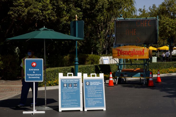 The continued closure of Disneyland was also cited by Moody's Investors Service when it downgraded the city's issuer rating to A1 from Aa1 in February and changed its outlook to negative from stable. The closure of the amusement park, a major economic driver for the city, weakened its revenues, Moody's said, as it also downgraded the rating on $196.4 million in senior lease revenue bonds to A2 from A1.