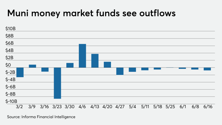In the week ended June 17, tax-exempt mutual funds saw $1.7 billion of inflows, according to data released by Refinitiv Lipper Thursday. It was the sixth week in a row that investors put cash into the bond funds.