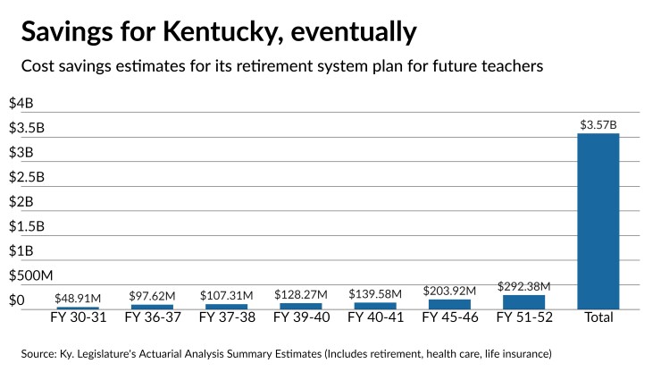 The new legislation will cut costs and lower the chances of the state seeing new and unexpected pension liabilities, Moody’s said. House Bill 258, enacted with a March 29 override of Gov. Andy Beshear's veto, creates hybrid structure for teachers hired after Jan. 1, 2022 that will provide a mix of defined-benefit and defined contribution retirement plans.