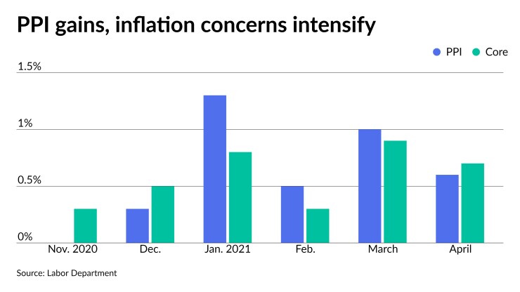 “The hotter-than-expected gains in consumer and producer prices this week are prompting us to upwardly revise our inflation forecasts over the balance of the year,” said Scott Anderson, chief economist at Bank of the West. “Even so, one month of price spikes does not fundamentally alter our view that the recent surge in prices will prove transitory longer-term.”
