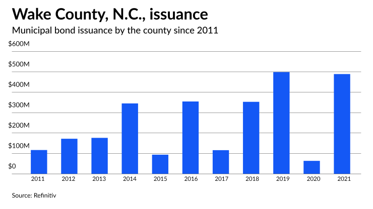 Since 2011, the county has sold about $2.8 billion of bonds, with the most issuance occurring in 2019 when it issued $499 million of debt.