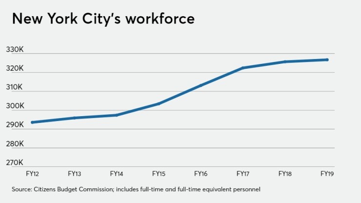 Critics have also cited the ballooning city workforce. According to