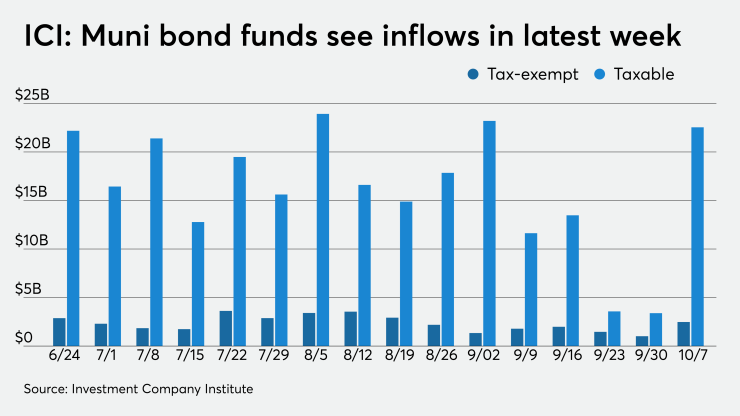 ICI reported muni bond funds and exchange-traded funds saw combined inflows of $2.5 billion, the 23rd straight week of positive results.