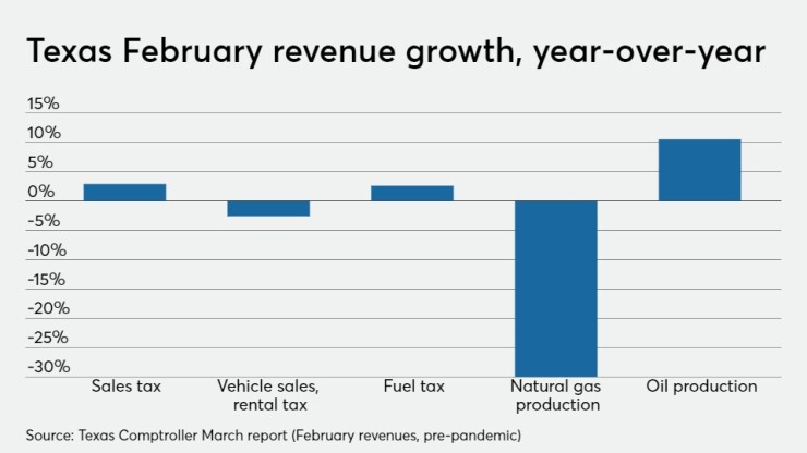 “The uncertainty regarding the trajectory of dual challenges — an oil rout and COVID-19 outbreak — will undoubtedly test both the state and local governments,” S&P analyst Oscar Padilla wrote in a March 17 report. "Ultimately, the magnitude of the effects of both challenges will depend on their depth and duration but at present, given the state's strong financial position combined with its strong financial management and oversight, will, in our view, afford it a degree of flexibility to manage challenges as they arise.”
