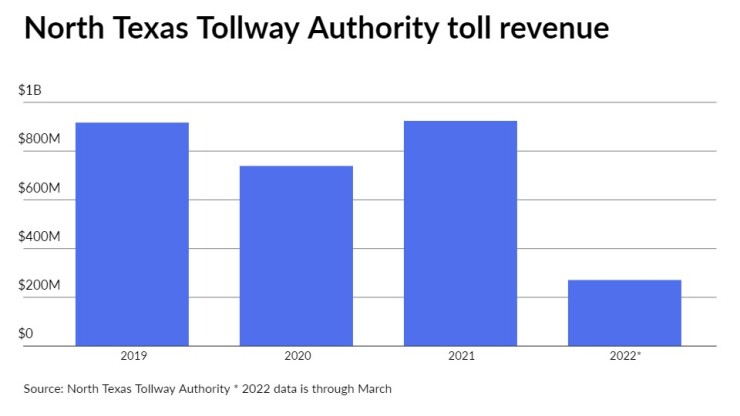 Toll revenue for the Dallas-region North Texas Tollway Authority last year exceeded pre-pandemic collections from 2019 and this year totaled $271 million as of March, although total traffic transactions lagged the 2019 level.