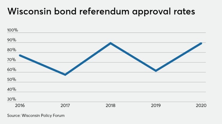 “Wisconsin voters again approved the vast majority of school district referenda to increase local property taxes, despite the economic uncertainty linked to the COVID-19 pandemic,” the Forum wrote.