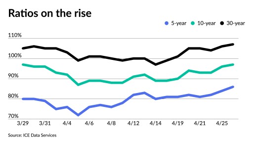 "While there has been some reported buying by relative value institutions amid higher ratios from the muni-centric price correction, the market as a whole may not rally this week," said Matt Fabian, a partner at Municipal Market Analytics.