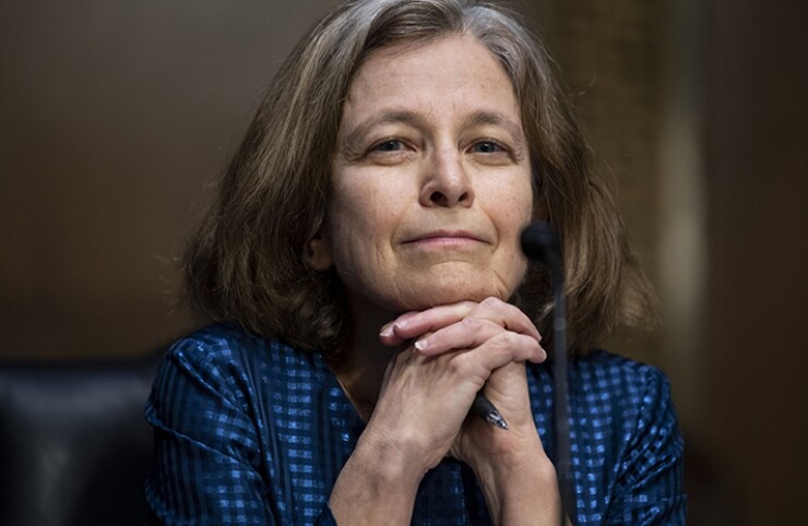 Sarah Bloom Raskin tried again Wednesday to assuage Republicans’ concerns about her hawkish stances on mitigating climate risks ahead of a vote on her nomination to be Wall Street’s top bank regulator.