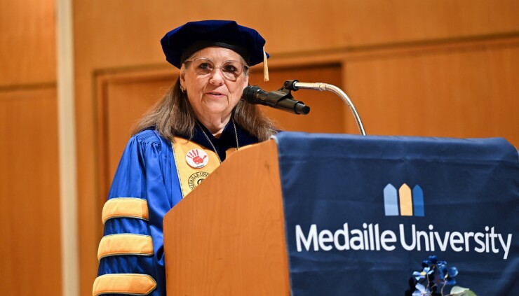 Medaille's bonds are rated BB-minus by S&P after being downgraded one notch in February. The ratings firm said at the time that Medaille's profile was "vulnerable," citing high staff turnover, falling enrollment and weak retention and graduation rates. The university traces its roots back to a teachers school in 1875, and has a Rochester satellite campus in addition to its main facilities in Buffalo.