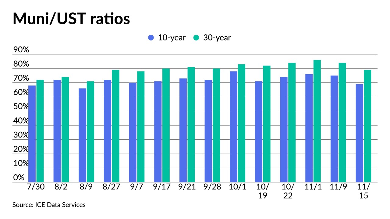 The long end of the municipal curve rallied under a backdrop of stronger-than-expected October jobs data and upward revesions to the prior two months ahead of the arrival of $9.6 billion next week.