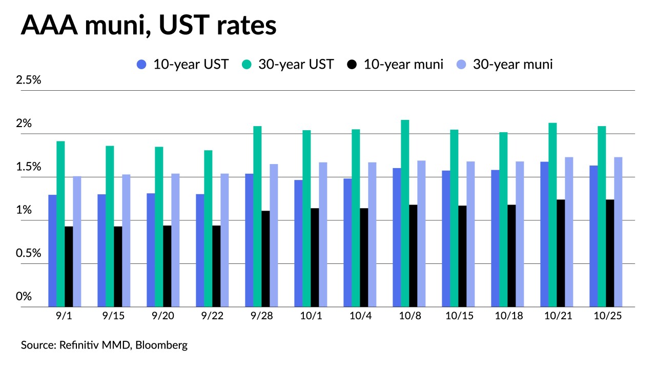 A lighter, $5 billion calendar, heavy on healthcare, kicks off November. Most participants agree volatility in U.S. Treasuries will be a leading factor for municipal market performance. Uncertainty in Washington also isn't helping the asset class.