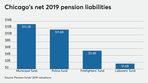 Chicago’s net pension liabilities rose to $31.8 billion in 2019 from $30.1 billion.