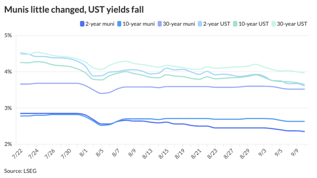 Issuance as of Wednesday is at $345.327 billion, a 32.7% increase over 2023. The Bond Buyer 30-day visible calendar on Monday was at $20.02 billion, the largest in nearly four years.