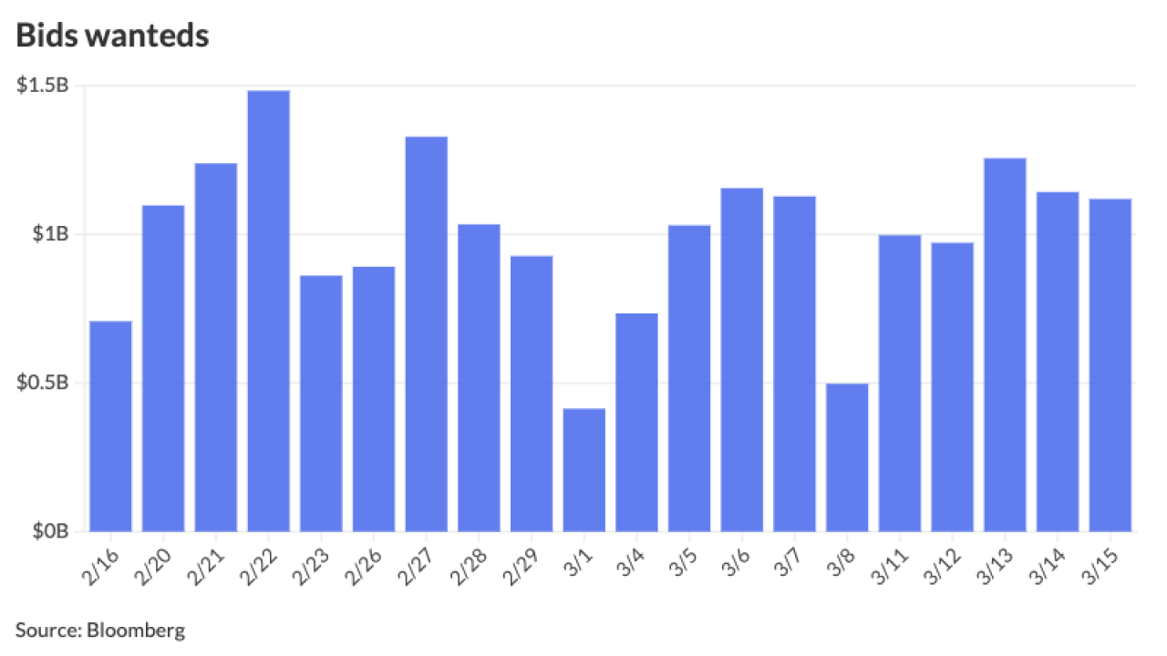 The New York MTA has not sold fixed-rate transportation revenue bonds since February 2021. The first maturity of that deal (4% 11/15/44) priced at +81 and was evaluated at +78 as of Wednesday by BVAL, according to CreditSights strategists. The same maturity but with a 5% coupon was priced at +59 to BVAL.