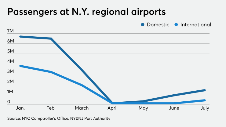 “While domestic travel has improved slightly since the spring, the city’s regional airports served fewer than 1.4 million domestic passengers and 371,461 international passengers in July, far below the 8.0 million domestic and 5.0 million international travelers last July,” the report said.