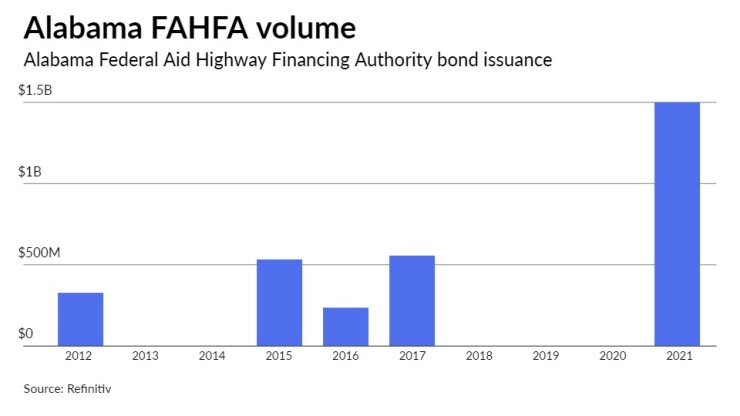 The Alabama Federal Aid Highway Finance Authority is in the market with one of its biggest deals ever — a $1.5 billion offering of taxable special obligation bonds.