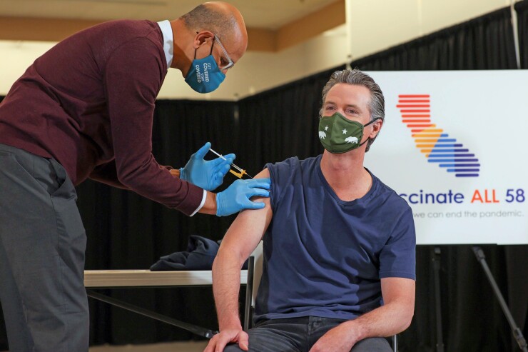 California Gov. Gavin Newsom set a June 15 target to fully reopen the state's economy, as long as COVID-19 vaccinations are widely available and hospitalizations remain at low levels.