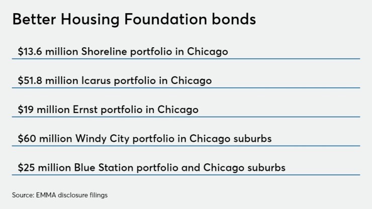 Shoreline is one of five portfolios that BHF sold $169 million of debt to purchase. The Illinois Finance Authority was the conduit issuer. The bonds sold between 2016 and 2018 for three Chicago affordable housing portfolios and two suburban portfolio. When they were issued the bonds were rated in the triple-B to single-A category by S&P Global Ratings depending on their senior or subordinate status. One series was not rated.