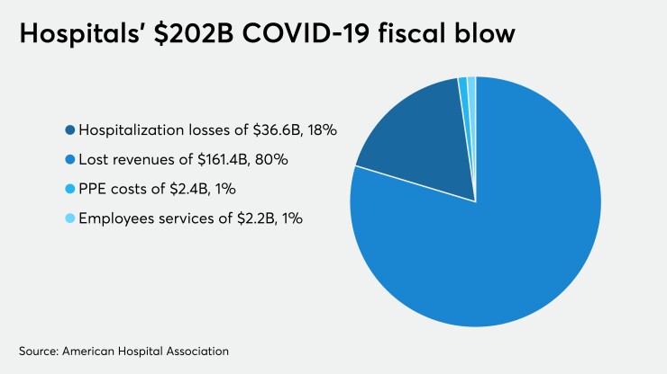 “Hospitals will likely continue to see lower service use while treating COVID-19 patients beyond June 30, which would result in continued financial pressures,” the AHA said. “The totality of these costs combined with the uncertainty of the pandemic’s duration is certain to imperil hospital finances.”