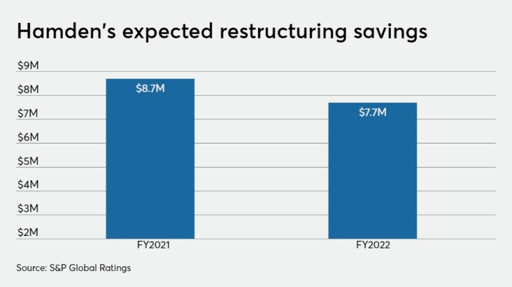 Moody's Investors Service in December downgraded Hamden to Baa3, the lowest investment grade rating, from Baa2, while retaining a negative outlook.