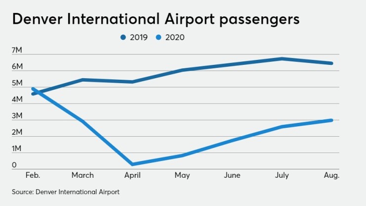 Denver joins other airports and issuers in seeking to slacken debt service over the next few years amid what is expected to be a gradual traffic recovery from the near standstill in the early days of the coronavirus pandemic.