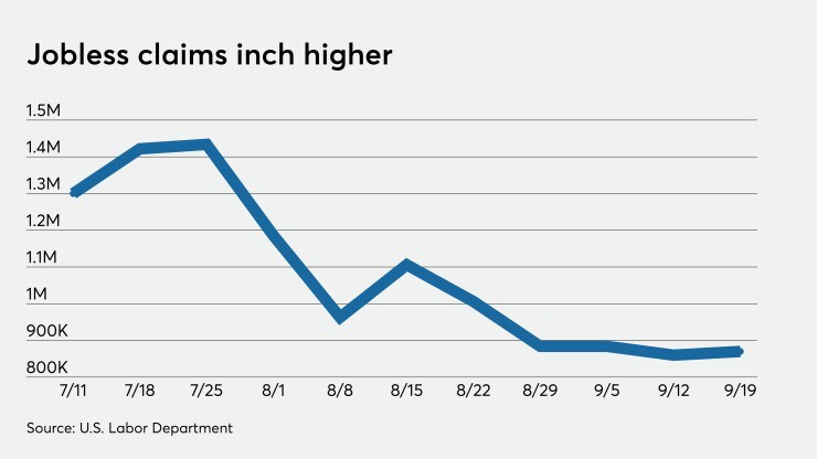 Claims rose to a seasonally adjusted 870,000 in the week ended Sept. 19, from the previous week’s upwardly revised level of 866,000, originally reported as 860,000, the Labor Department said Thursday.