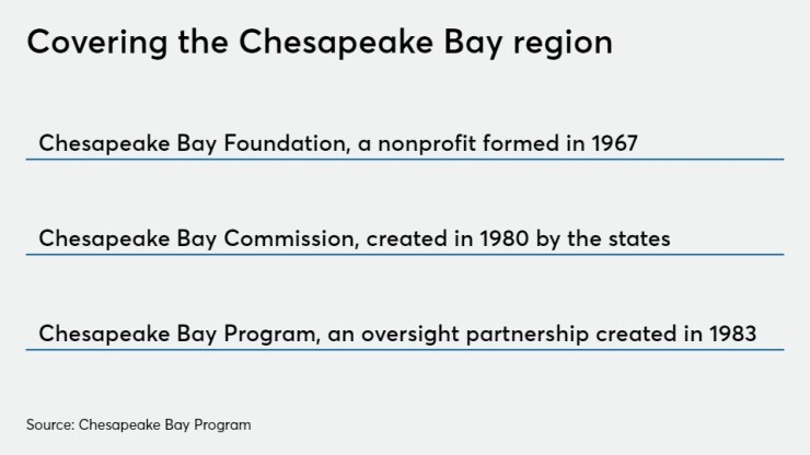 The suing states and D.C. are four of the eight members of the Chesapeake Bay Program, an oversight entity created in 1983. West Virginia is also a member but not a plaintiff in the suit. Pennsylvania, New York and the EPA are also members.