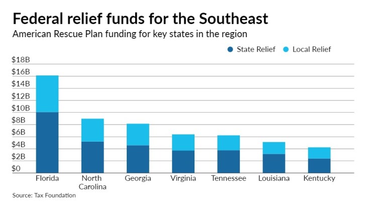 In the Southeast, almost $70.85 billion will be dispersed to state and local governments.