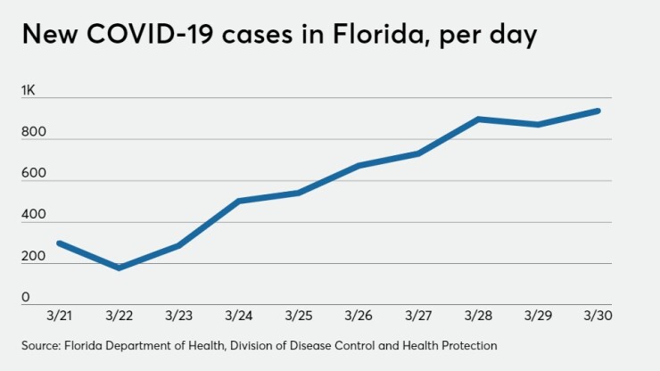Florida lawmakers and economists, however, haven't provided initial projections on how much state revenue could be lost as the crisis unfolds, even though DeSantis ordered all restaurants to close dining areas two weeks ago while also closing bars and gyms.