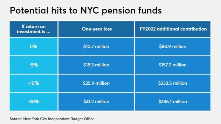 The plunge of the financial markets amid COVID-19 stands to push up pension costs — and budget strain — for New York City.