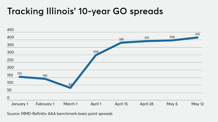 The market will be watching closely for how steep a spread penalty the state faces as there's much speculation over pricing premiums, the state's timing on the issues and whether the state is looking at the Federal Reserve's Municipal Liquidity Facility short-term lending program. Illinois is qualified for $9.7 billion in financing and Chicago for $1.5 billion.