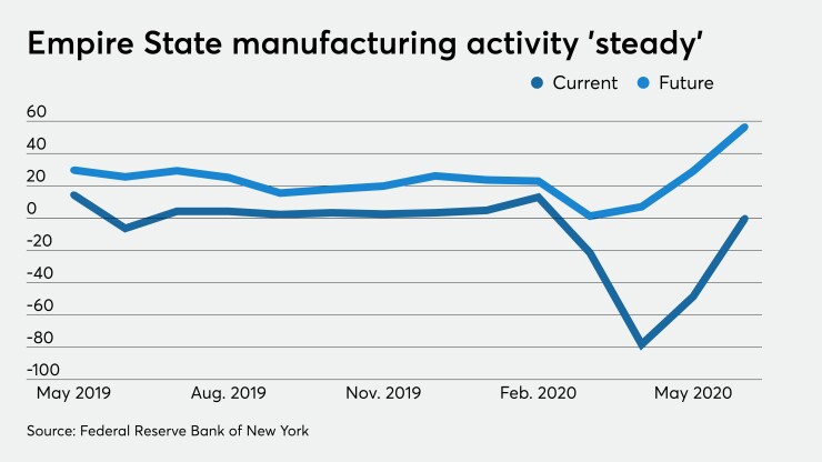 Business activity “steadied” in New York State in June, recovering from record lows in April and May, according to the Empire State Manufacturing Survey, released Monday by the Federal Reserve Bank of New York.