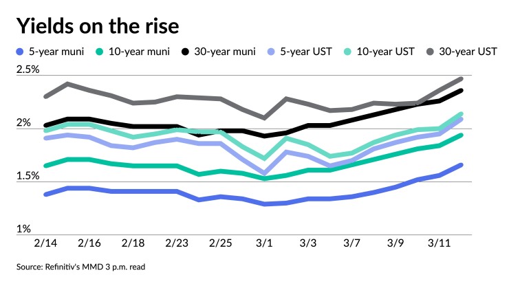 Washington 5s of 2038 at 2.41% versus 2.09% on 3/7. California 5s of 2041 at 2.58% versus 1.97%-2.02% on 3/2