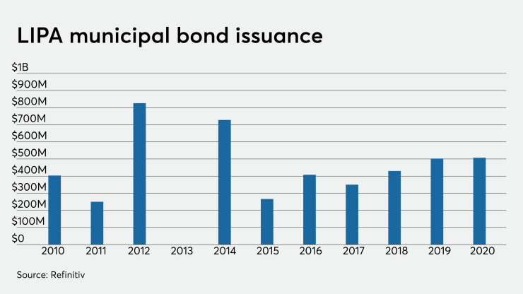 Since 2020, LIPA has sold about $4.5 billion of debt with the most issuance occurring in 2012 when it sold $826 million. It didn’t come to market in 2013.