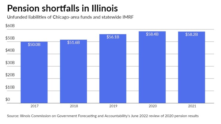 “Pension plans have made little funding progress in recent years and their costs have been rising, pressuring municipalities' budgets,” S&P Global Ratings wrote in a 2021 special pension brief, “Single-Employer Pension Plans Are Straining Illinois Municipalities Credit Quality.”