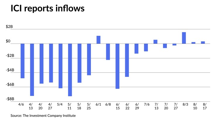 The Investment Company Institute reported $230 million of inflows into muni bond mutual funds in the week ending August 17 compared to $223 million of inflows the previous week.