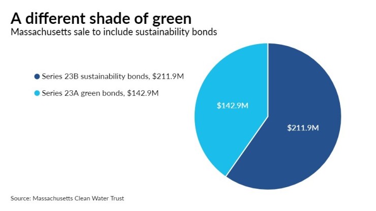 The Massachusetts Clean Water Trust intends to sell $355.5 million of state revolving fund bonds this week, including a tranche that officials say is the first sustainability bond issuance for any state revolving fund program in the country.