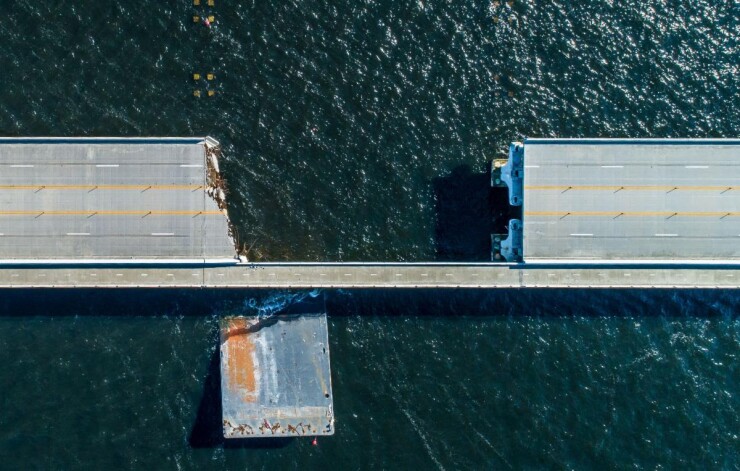 The Pensacola Bay Bridge became impassable when Skanska USA-owned construction barges came loose from moorings during the hurricane, completely destroying some portions of the bridge. Skanska was using the barges to do a $430 million widening of the bridge, which was expected to be done later this year.