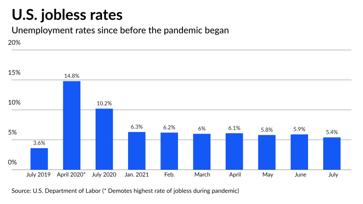 However, they said the trends of growth in food services and education employment are threatened by the increased virus spread with the Delta variant and re-imposed public health restrictions in response.