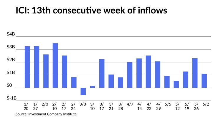The Investment Company Institute reported $1.089 billion of inflows into municipal bond mutual funds for the week ending June 2 after $2.325 billion reported the week prior. Exchanged traded funds saw $286 million of inflows after $285 million the week before.