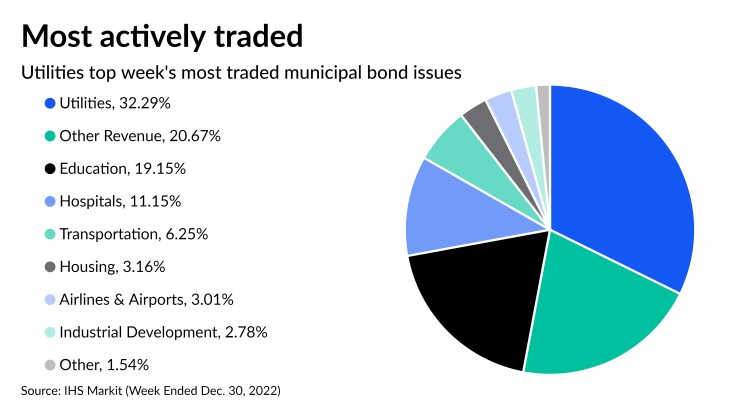 For the week of Jan. 3, expected new issuance totals $1.28 billion. Negotiated deals total $1.16 billion while there will be $128 million of competitive sales.