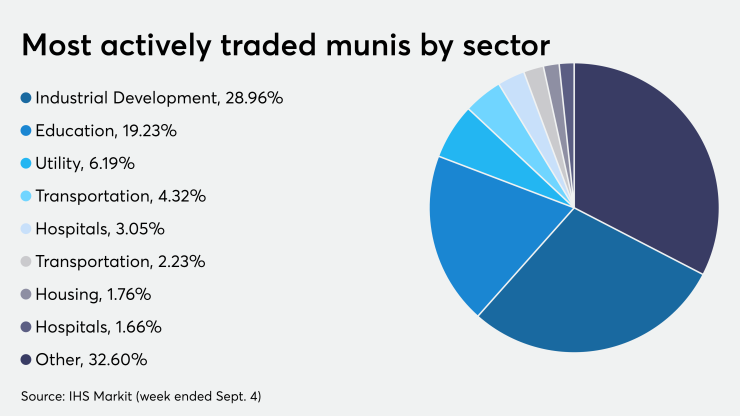 Last week, the most traded muni sector was industrial development followed by education and utilities, IHS Markit said.