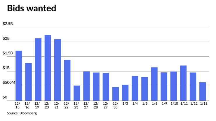 Bids-wanteds totaled about $4.72 billion for the week, per Bloomberg, which is the first time since March 2022 bids-wanted fell below $5 billion for a week.