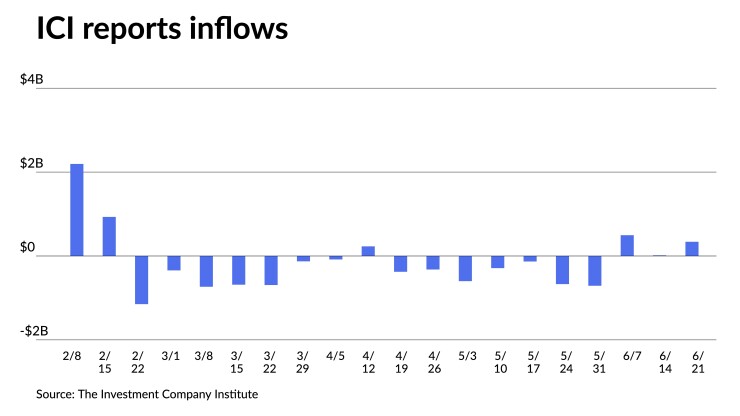 The Investment Company Institute reported investors added $338 million to municipal bond mutual funds in the week ending June 21, after $16 million of inflows the previous week. Exchange-traded funds saw inflows of $884 million after $21 million of inflows the week prior.