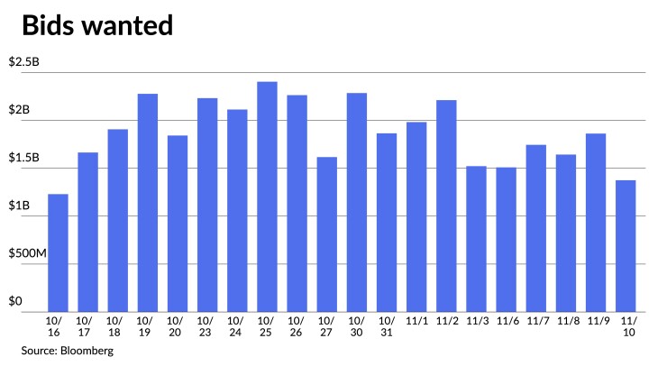 November "continues to be off to a strong start as yields have fallen an average of 34 basis points across the curve since the start of the month," said Jason Wong, vice president of municipals at AmeriVet Securities.