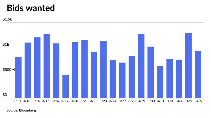 Trading for the holiday-shortened week was around $27.89 billion, while bids wanteds fell to around $3.77 billion for the week, he said.