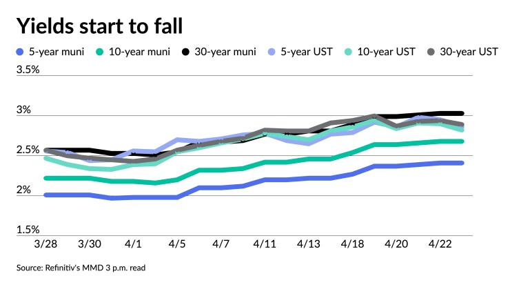 Muni returns remain deep in the red. The Bloomberg Muni Index has posted negative 2.52% returns in April and losses of 8.59% year-to-date. High-yield is showing 3.13% losses for the month and 9.46% for 2022 while taxables have lost 5.19% month-to-date and 13.05% in 2022 so far. Bloomberg's Impact Index is showing 3.34% losses for April and 10.92% year-to-date.