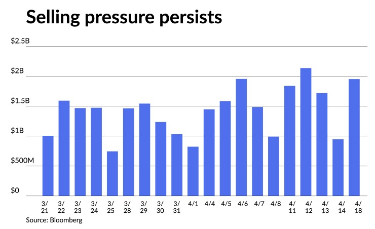 There is “severe” customer selling, with a flood of bids-wanted lists on a daily basis, according to the trader, who described the situation as “hard to keep up.” So far this year, there have been 38 trading sessions where bids-wanteds topped $1 billion.