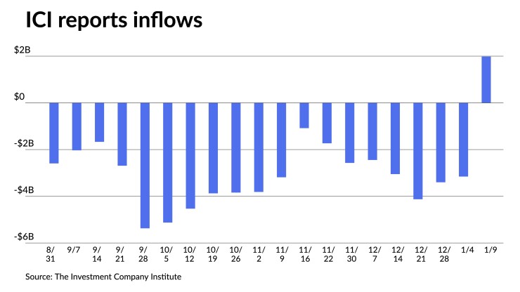 Inflows returned with the Investment Company Institute reporting investors added $1.982 billion to mutual funds in the week ending Jan. 11, after $3.157 billion of outflows the previous week.