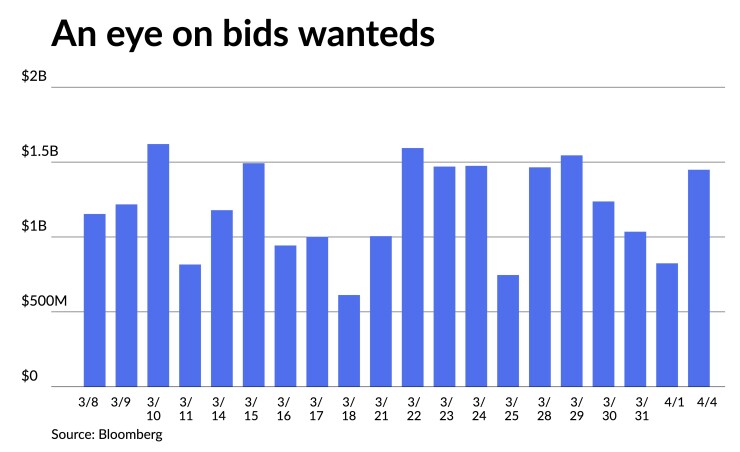 In the next weeks, they foresee tumultuous market conditions, especially if mutual fund redemptions persist. Furthermore, they foresee little reinvestment demand in April, given the majority of the month's principal and interest was paid out on April 1.